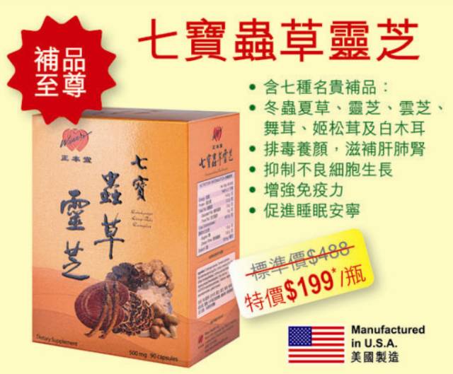 每日服用《正本堂七寶蟲草靈芝》或能有效抑制不良細胞生長,增強免疫力,滋養肝,肺及腎,增進血液循環,抗斑養顏,令人容光煥發,促進睡眠安寧,改善腸胃不適及便秘,就立即購買 【正本堂 七寶蟲草靈芝】服用